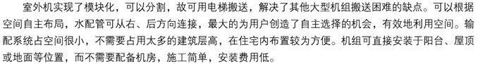 | 机给室内机可依室外机功率,风机盘管的不同,室内空间的大小自由选择搭配. |