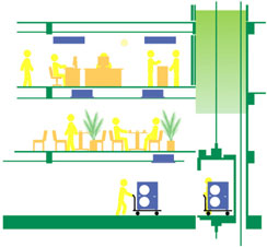 可使用小型乘用电梯搬入(可供6人乘用的最小型号电梯)。在所有建筑物中都不需要用到吊车。